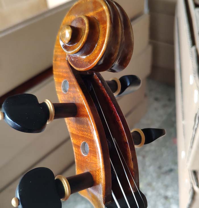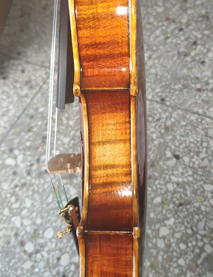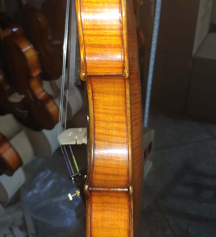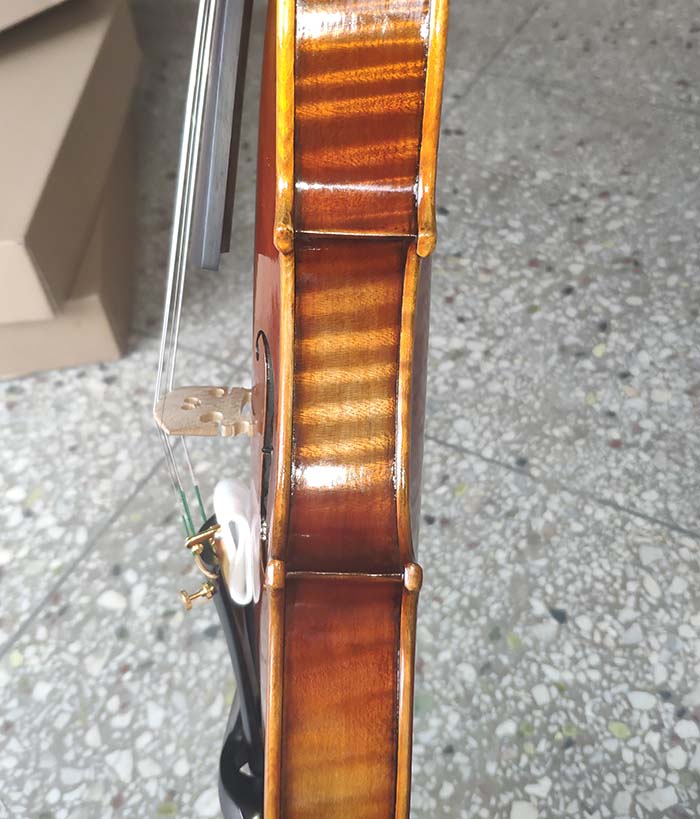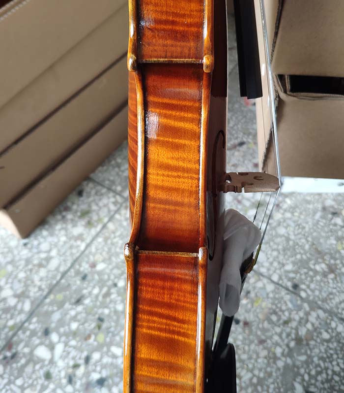 描述:這一批琴無論是從外形還是音質方面來說,都是非常棒的,尤其是共振,更是技高一籌,好像是自帶音響一箱,非常的響亮。這把琴的油漆風格個人非常的喜歡,仿就工藝也做的非常好,看上去像是很有內涵很有年份的琴。總之,這把琴無論是專業演奏,還是當作進階琴來用,都非常的合算,性價比高。